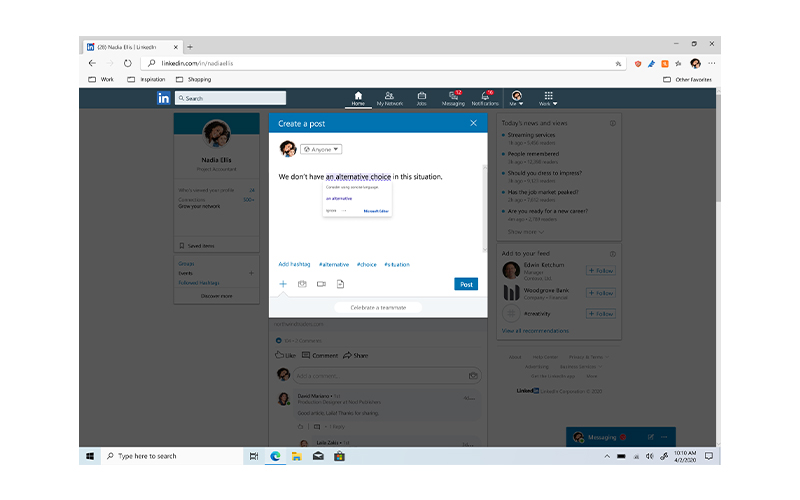 Microsoft Editor2的AI智能寫作小助手提供 80 多種語言的語法和拼寫的進階寫作指南,現在您可以隨時隨地寫出出色的佳作。