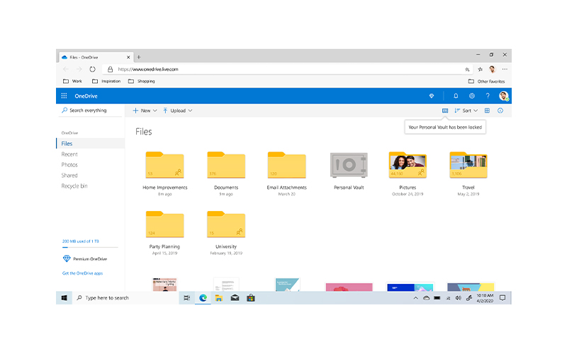 個人保存庫是 OneDrive 中一個受保護的資料夾,必須通過用戶的雙重身份驗證才能開啟,確保您的重要文件(包括護照、駕駛執照或保險文件等)獲得多一重的保護。