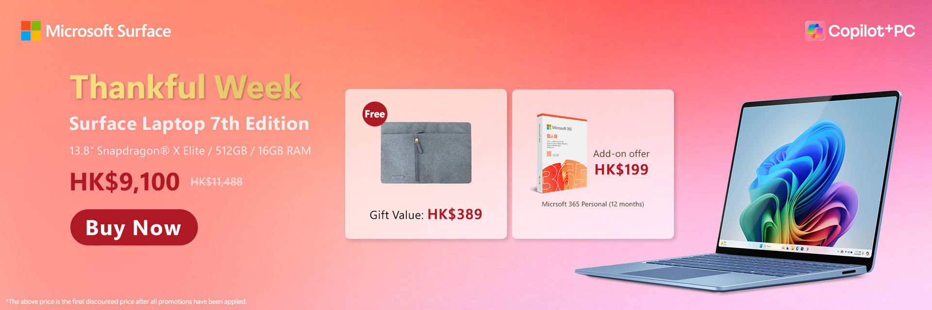 Surface Laptop 7th Edition - 13.8" Snapdragon® X Elite / 512GB SSD / 16GB RAM (Black)