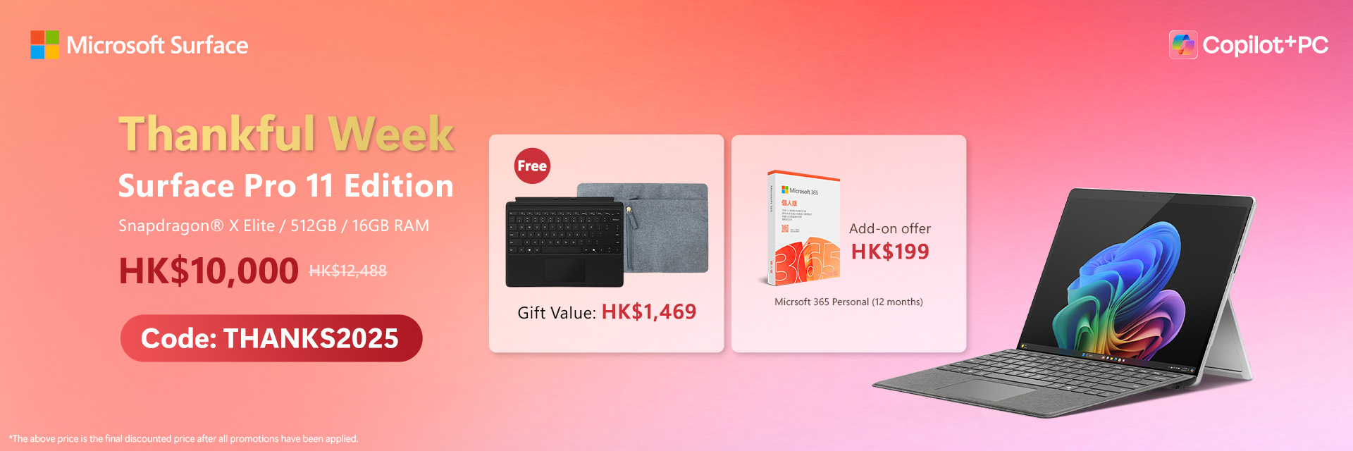 Surface Pro 11th Edition - Snapdragon® X Elite / 1TB SSD / 32GB RAM (Platinum)